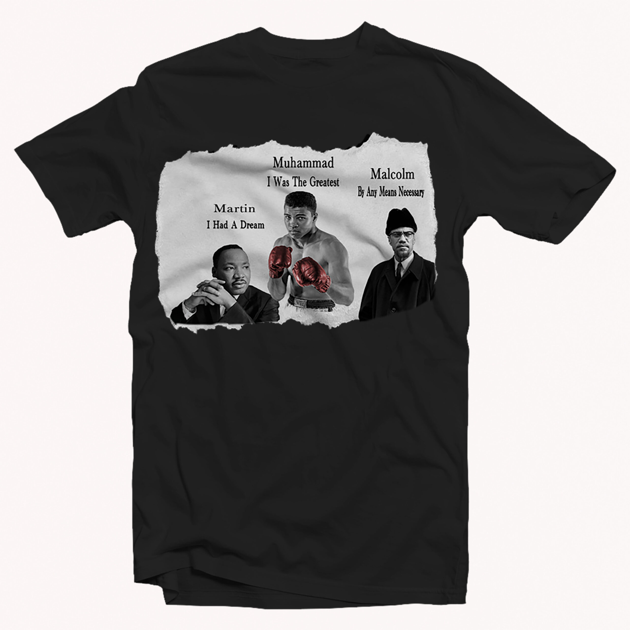 Show your respect for these iconic figures with our 3 Kings T-Shirt. This shirt features high-quality graphics of Malcolm X, Martin Luther King Jr, and Muhammed Ali, symbolizing their legacy and impact on history. Made from soft and comfortable material, this t-shirt is perfect for everyday wear. Get yours today and honor the legacy of these influential leaders!