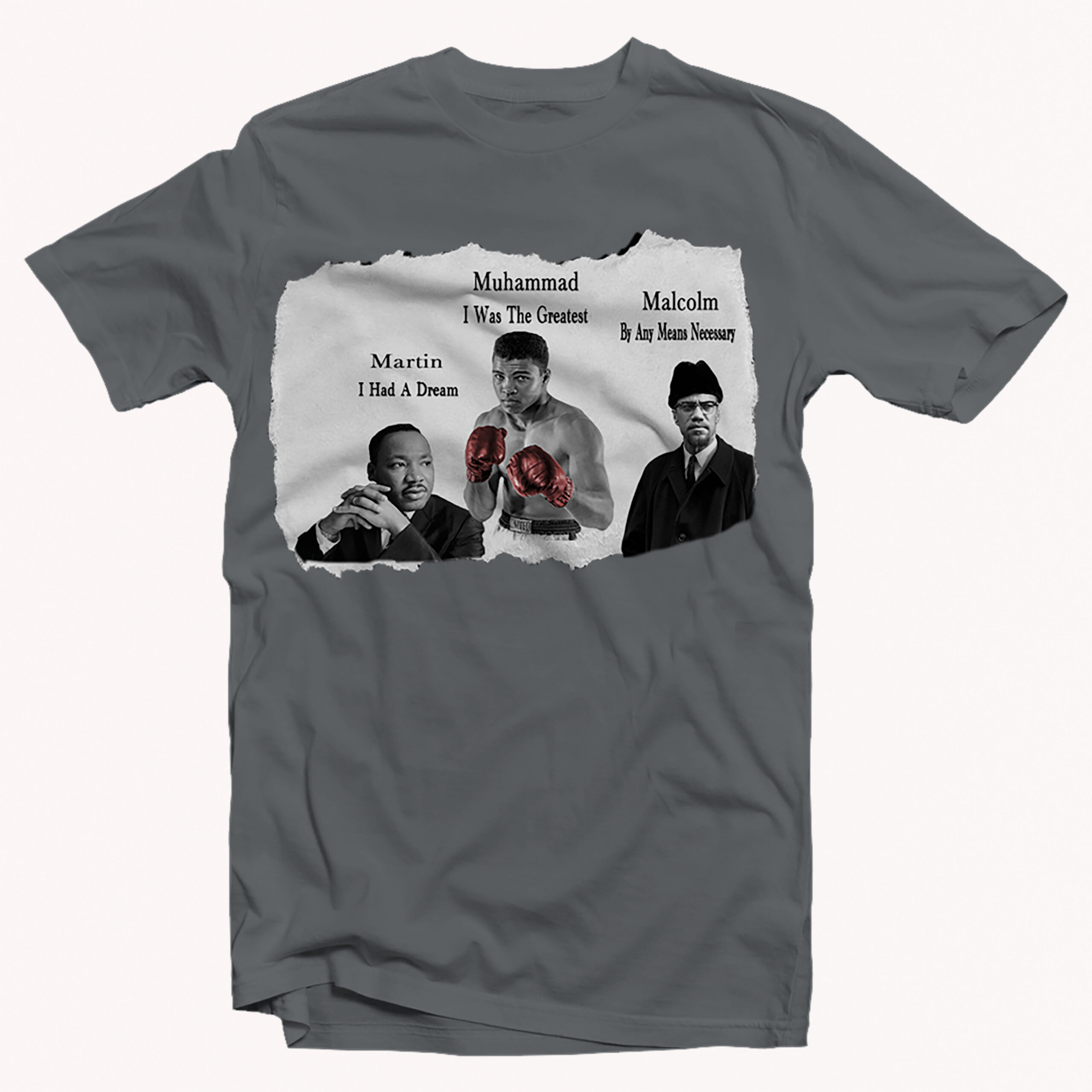 Show your respect for these iconic figures with our 3 Kings T-Shirt. This shirt features high-quality graphics of Malcolm X, Martin Luther King Jr, and Muhammed Ali, symbolizing their legacy and impact on history. Made from soft and comfortable material, this t-shirt is perfect for everyday wear. Get yours today and honor the legacy of these influential leaders!